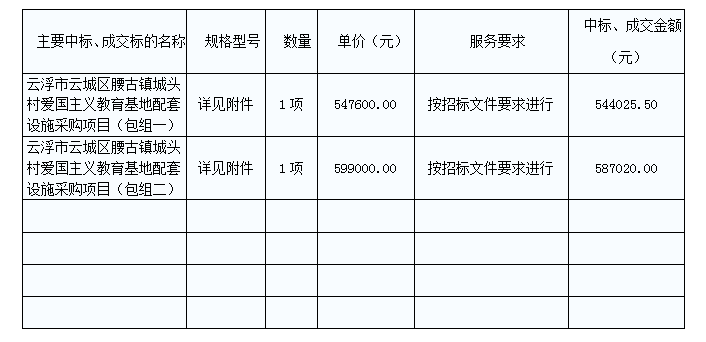 云浮市云城區(qū)腰古鎮(zhèn)城頭村愛(ài)國(guó)主義教育基地配套設(shè)施采購(gòu)項(xiàng)目中標(biāo)公告