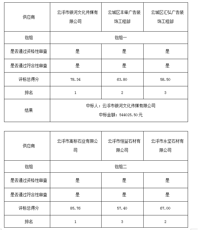 1:中標(biāo)供應(yīng)商名稱 云浮市銀河文化傳媒有限公司 法人代表 唐海群 地址 云浮市云城區(qū)高峰羅桂橋新桂區(qū)45幢9號(hào)一層一卡商鋪(包組一)